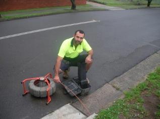 with the CCTV drain camera to accurately locate the blockage, minimising the